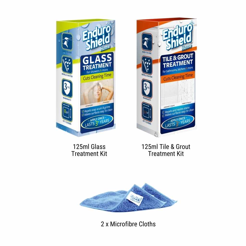 EnduroShield's Popular Bathroom Bundle protects your glass, tile and grout surfaces. The easy to apply coating repels water, soap scum and grime.